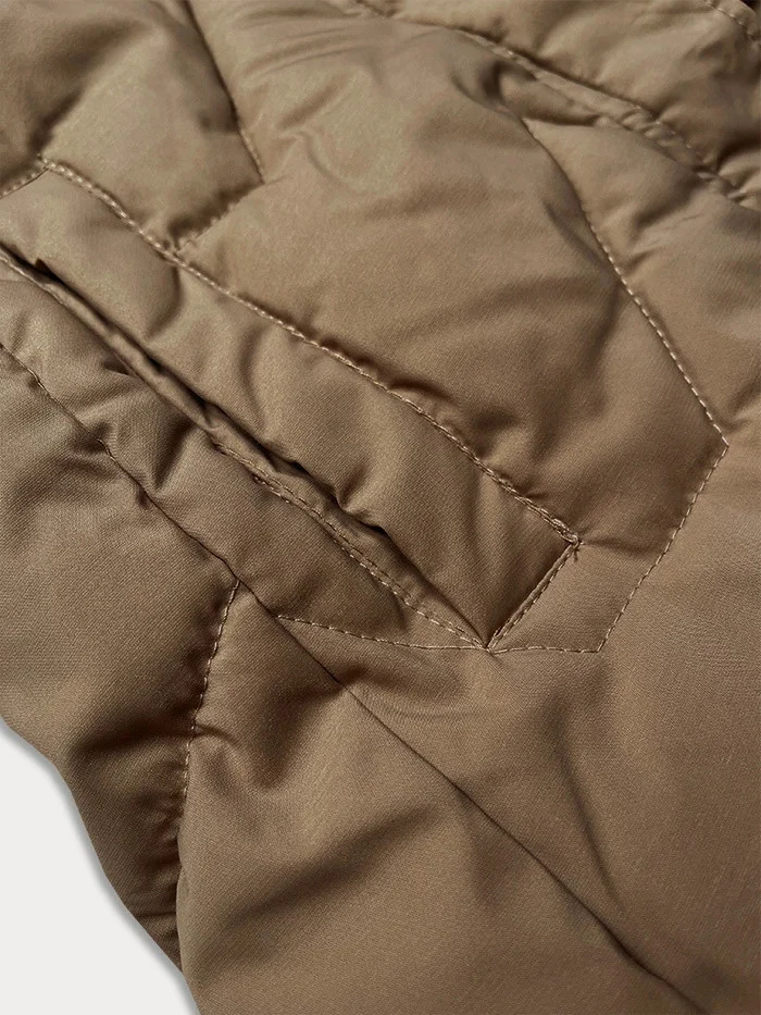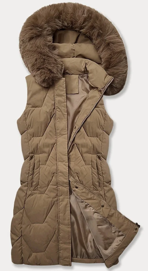 Tmavě béžová dámská vesta s kapucí olemovanou kožešinou J Style (16M9172-84)