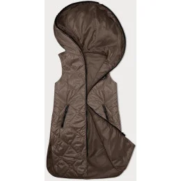 Tmavě béžová dámská vesta s ozdobným prošíváním (B8230-12)