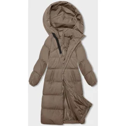 Tmavě béžová dlouhá hrubší dámská bunda s kapucí (5M3163-84)