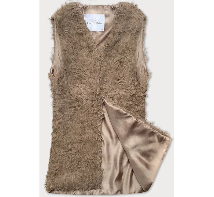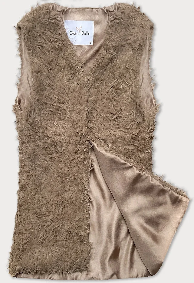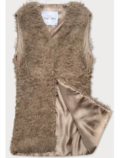 Tmavě béžová kožešinová vesta s dlouhým model 20658887 - Och Bella