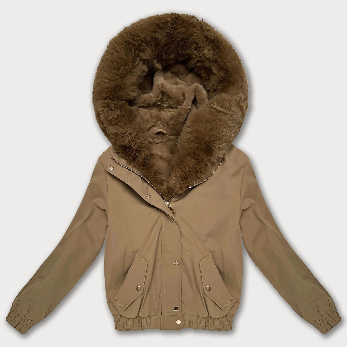Přidání recenze k Tmavě béžová krátká bunda s kožešinovou podšívkou S'West (B8506-22)
