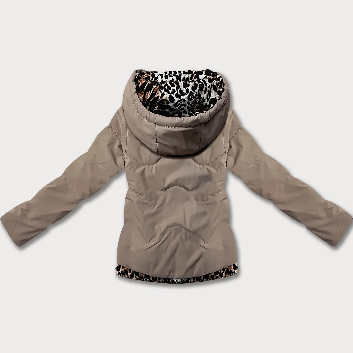 Přidání recenze k Tmavě béžová krátká volná dámská bunda s panteřím motivem Miss model 21035928 - Miss TiTi