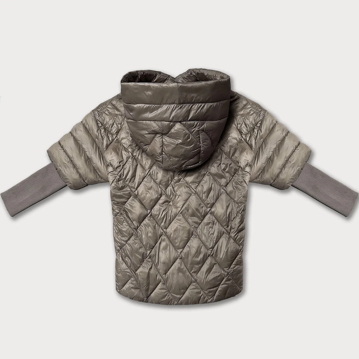 Bunda má volný střih, je lehce zateplená vrstvou syntetické péřové výplně, má dvě kapsy a zapíná se asymetrickým dvousměrným zipem. Model má délku k bokům.