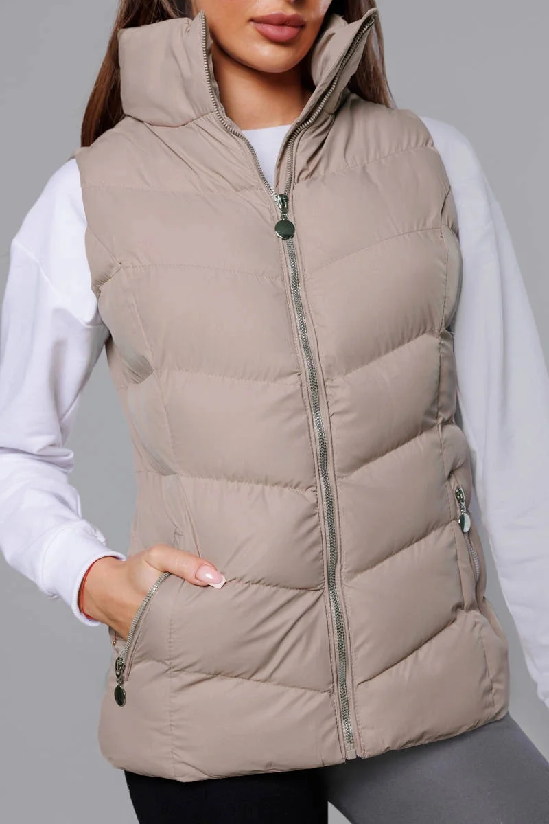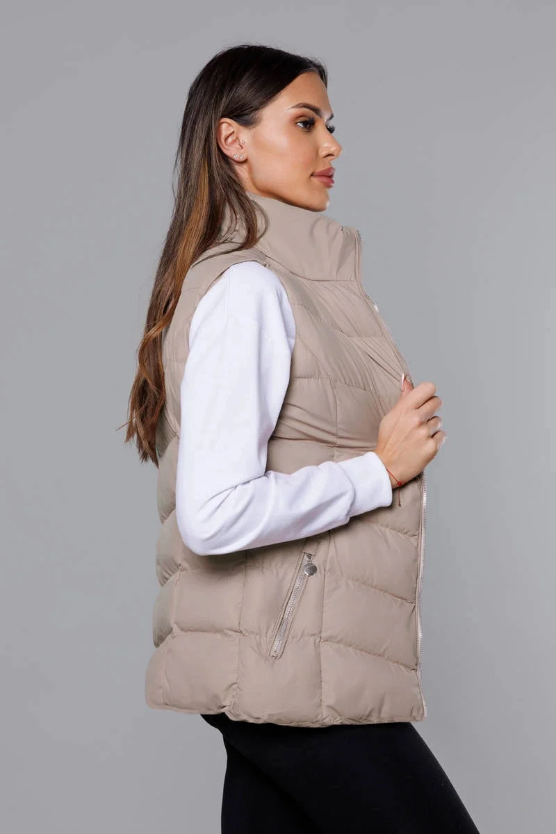 Tmavě béžová péřová dámská vesta model 17752118 - J.STYLE