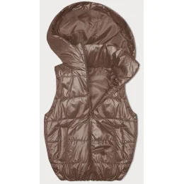 Tmavě béžová péřová vesta s odepínací kapucí (B8247-101)