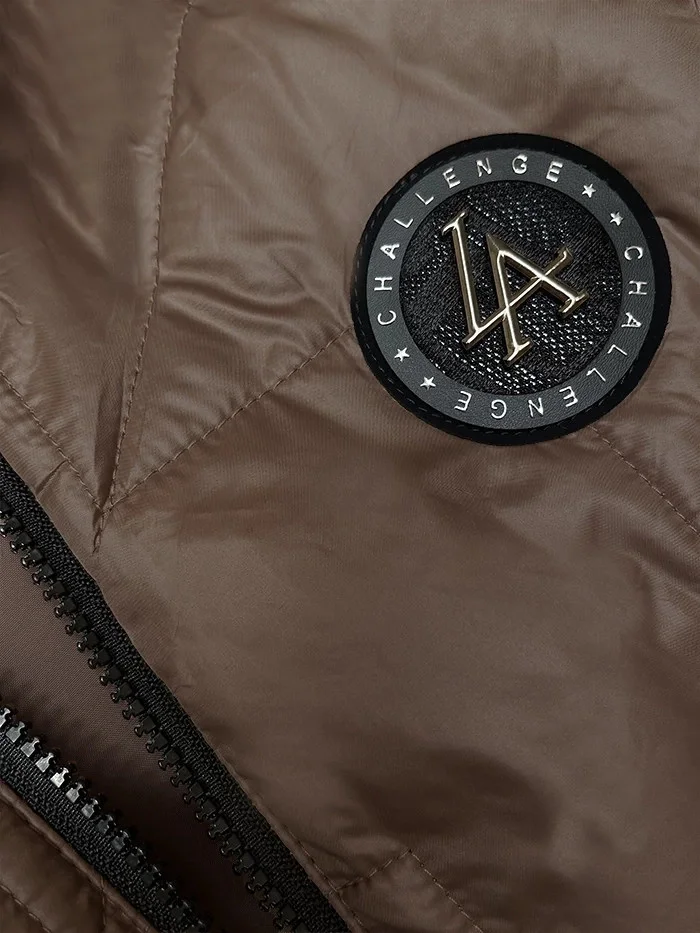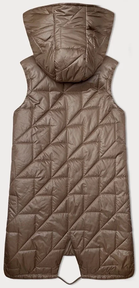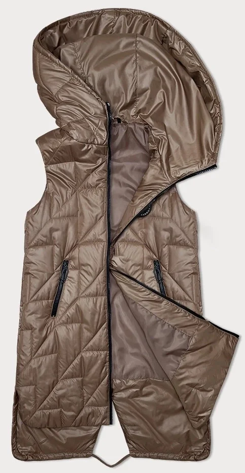 Tmavě béžová prošívaná dámská vesta s asymetrickou spodní částí model 19447225 - S'WEST