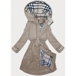 Tmavě béžová tenká dámská bunda parka s kapucí BH Forever (2) (BH-2403)