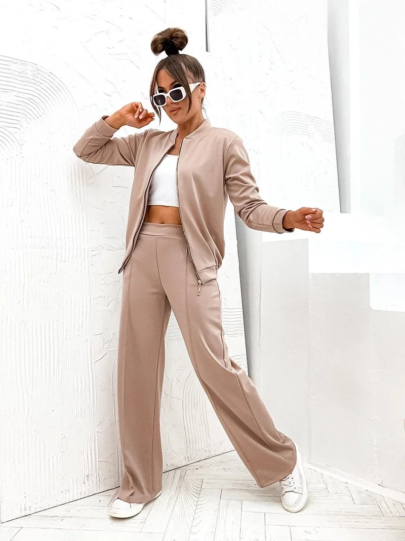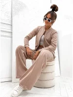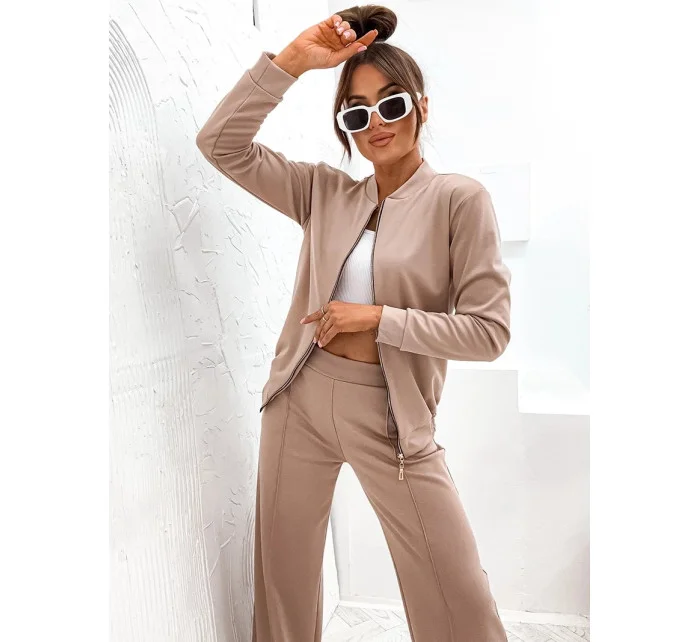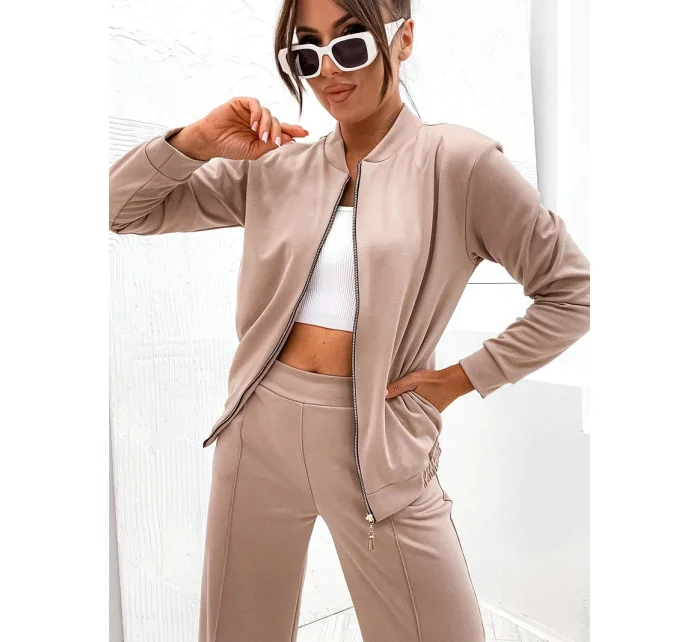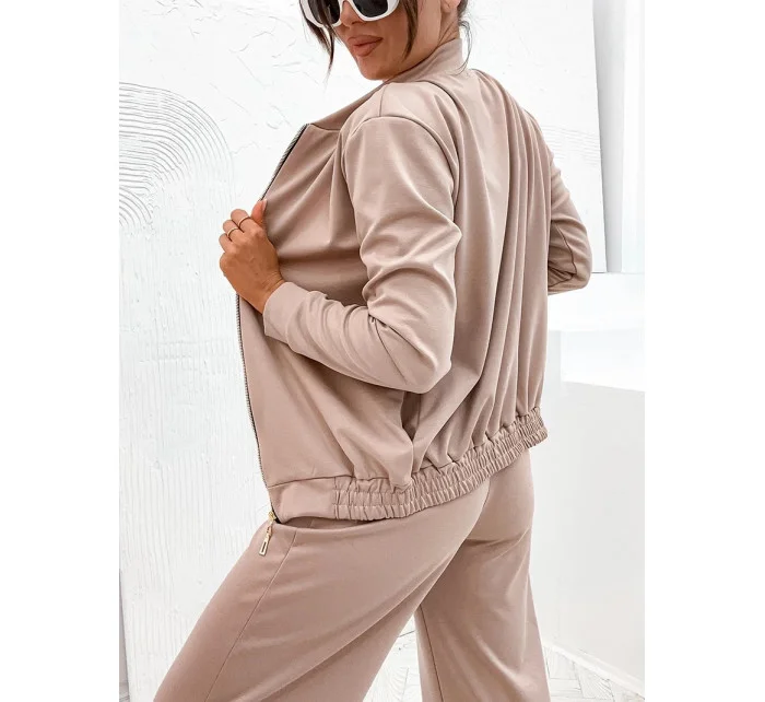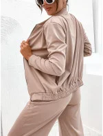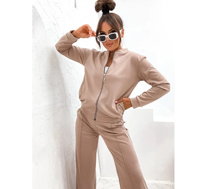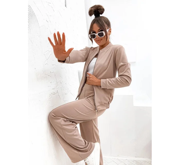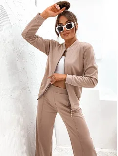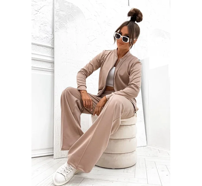 Tmavě béžový dámský komplet - mikina bomberka a široké kalhoty (82105)