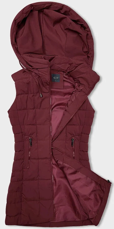 Tmavě červená dámská vesta s kapucí (16M9096-06)