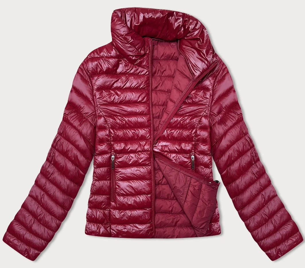 Tmavě červená prošívaná dámská bunda se stojáčkem model 18914548 - J.STYLE