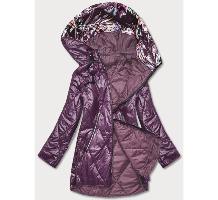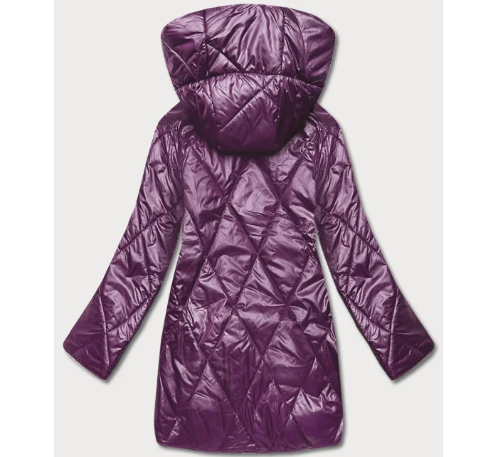 Tmavě fialová dámská bunda s ozdobnou kapucí (B8126-71)