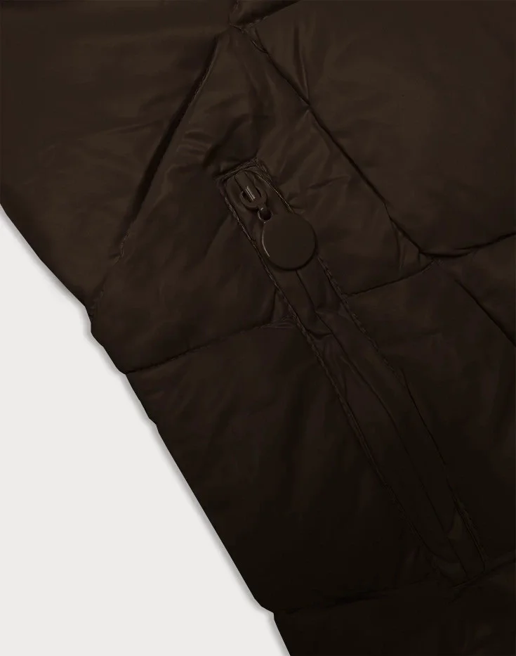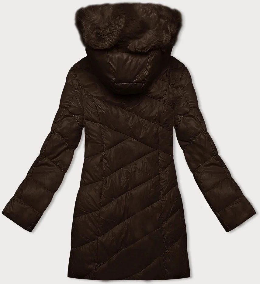 Tmavě hnědá dámská zimní bunda s kapucí (H-898-23)