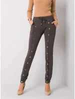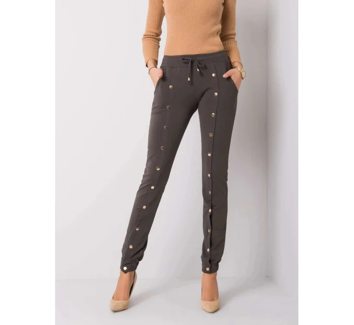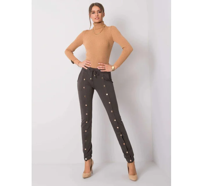 Dámské bavlněné kalhoty Plus Size s páskem khaki