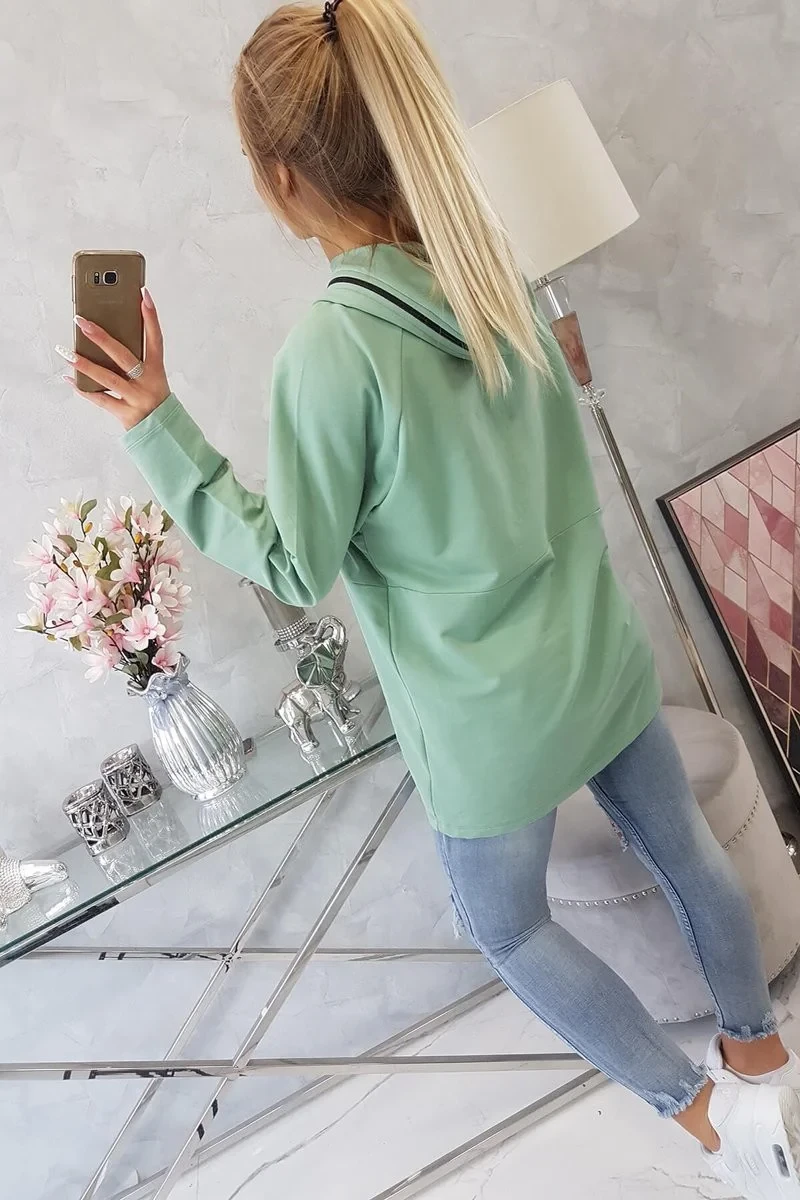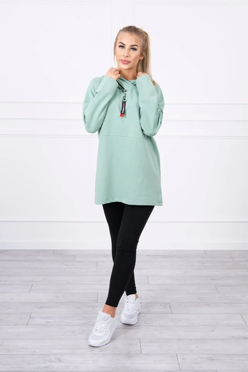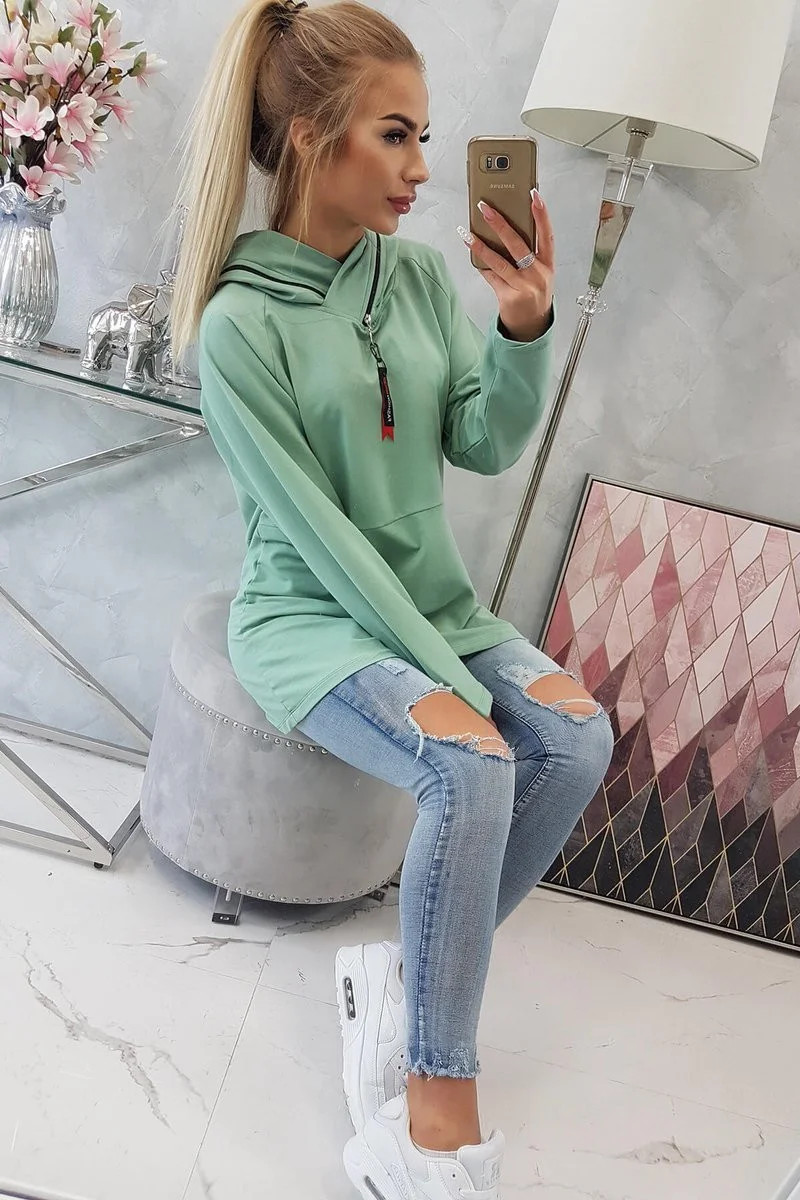 Tmavě mátová tunika na zip s kapucí Oversize