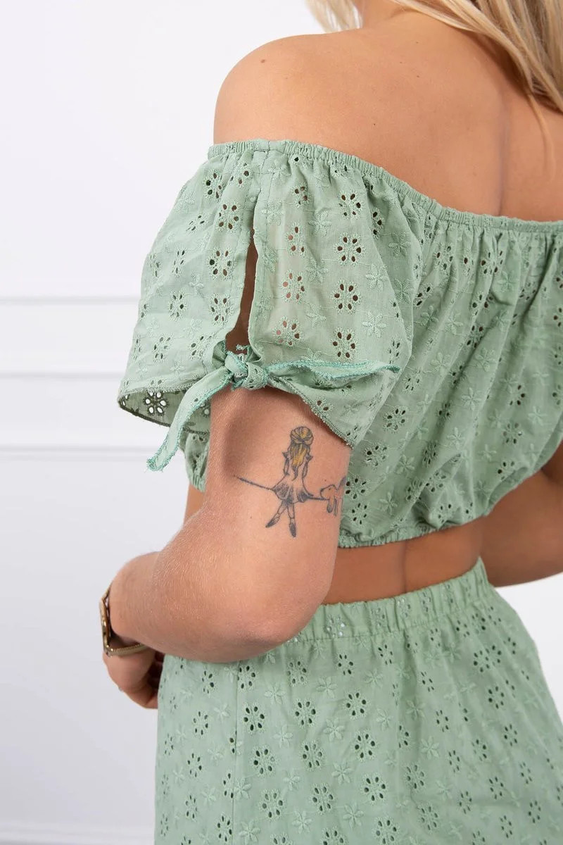 Představujeme vám sadu halenky a sukně. Halenka a sukně wze vzdušné, příjemné tkaniny. Nepostradatelné pro horké dny. Halenka s vázáním na rukávech. Sada je vyrobena z vysoce kvalitního materiálu. Velikost je univerzální a vyhovuje dámám, které nosí velikost S, M nebo L.