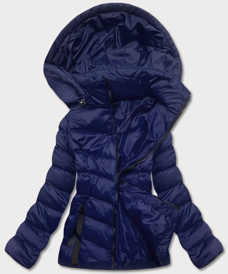 Tmavě modrá dámská bunda s kapucí pro přechodné období (5M786-215)