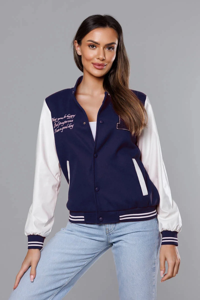 Přidání recenze k Tmavě modrá dámská bunda typu bomber model 18141017 - J.STYLE