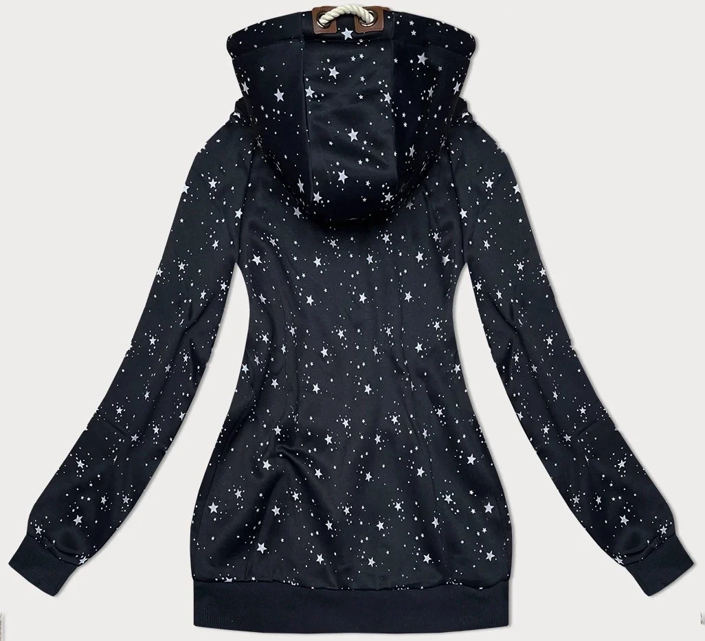 Tmavě modrá dámská mikina s kapucí a se vzorem hvězdiček (2305)