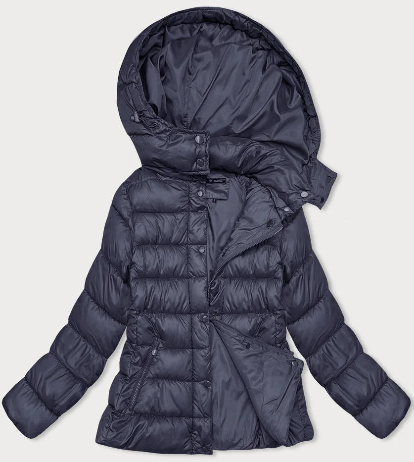 • Tmavě modrá dámská prošívaná zimní bunda s kapucí (YP-22075-2)