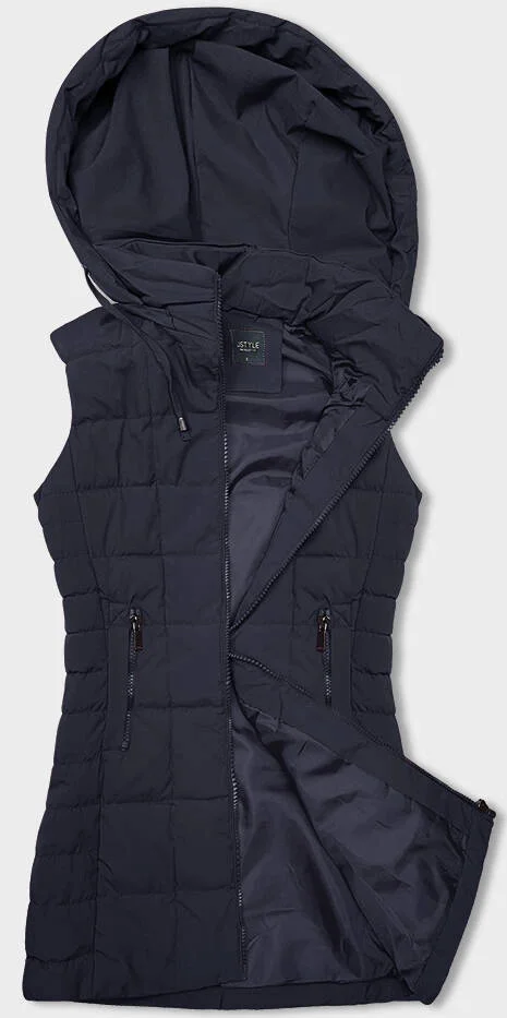 Tmavě modrá dámská vesta s kapucí (16M9096-215)