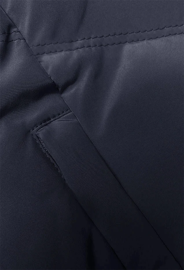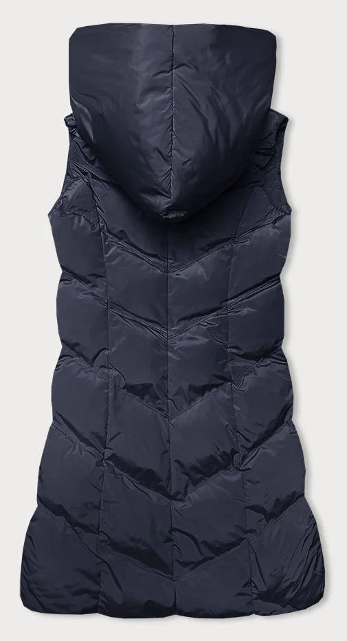Přidání recenze k Tmavě modrá dámská vesta se stojáčkem a kapucí (23-011)