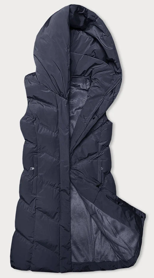 Tmavě modrá dámská vesta se stojáčkem a kapucí (23-011)