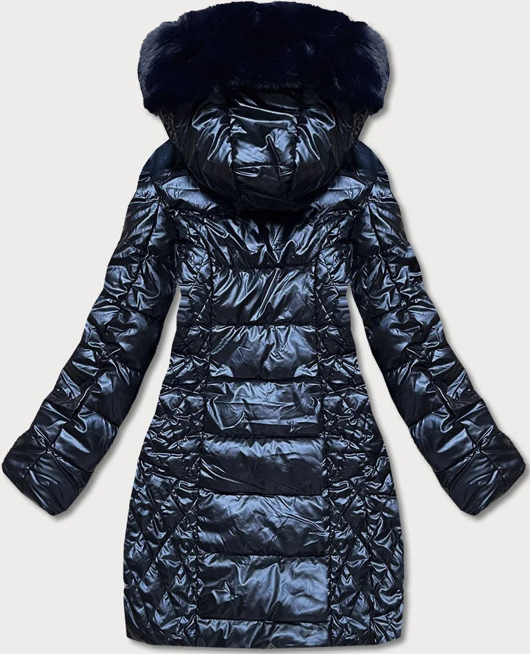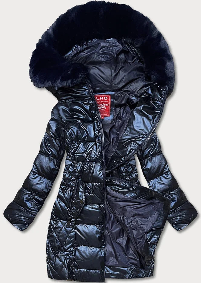 Tmavě modrá dámská vypasovaná zimní bunda (2M-028)