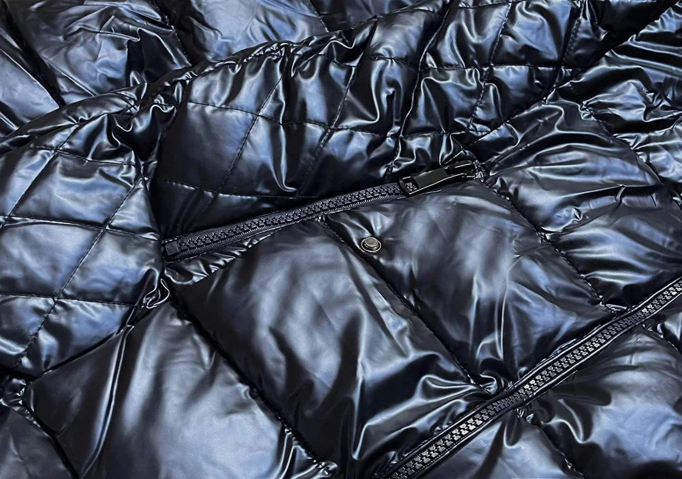 Bunda je zateplená syntetickou péřovou výplní, má dvě kapsy a zapíná se zipem. Model má kapuci olemovanou kožešinou. Zatímco kapuci není možné odepnout, kožešinu odepnout lze. Na bocích modelu je ozdobné prošívání. Bunda má délku do poloviny stehen.