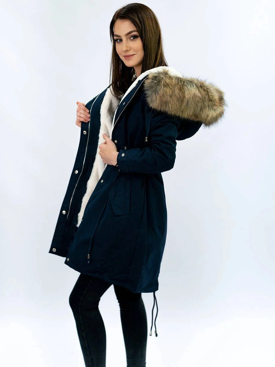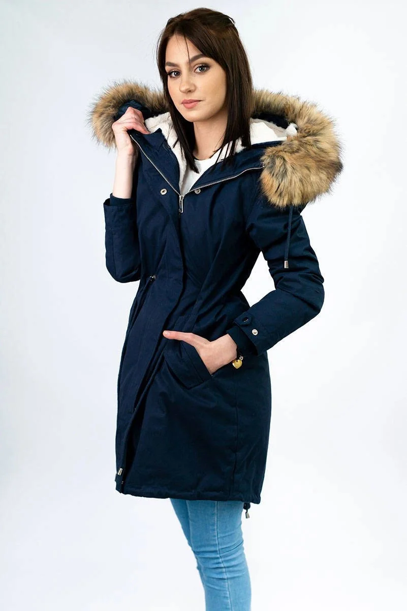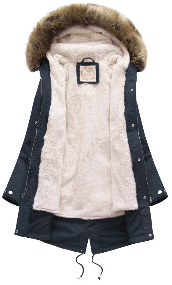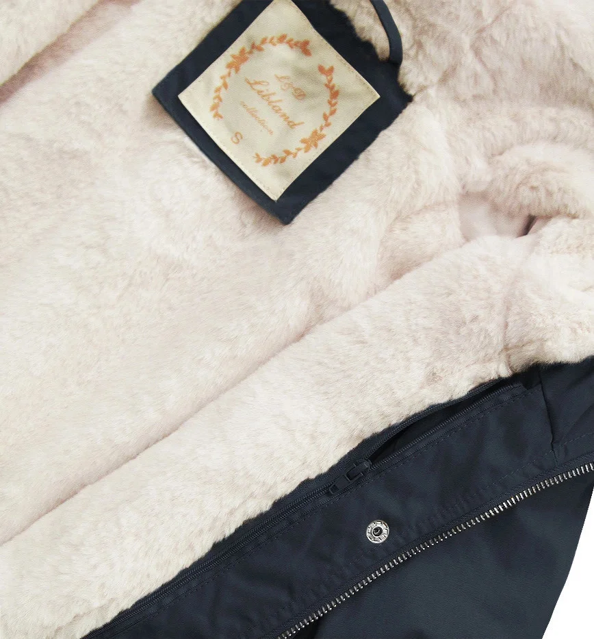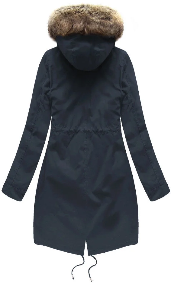 Tmavě modrá dámská zimní bunda parka s kapucí a odepínací kožešinovou podšívkou model 21242084 - Libland