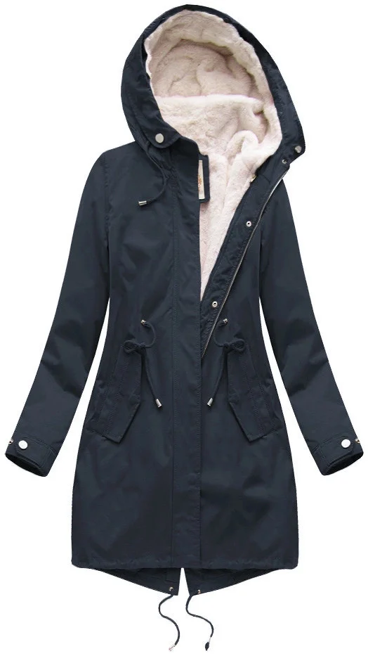 Přidání recenze k Tmavě modrá dámská zimní bunda parka s kapucí a odepínací kožešinovou podšívkou model 21242084 - Libland