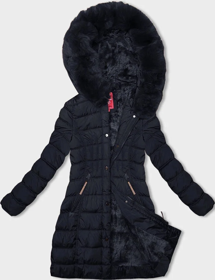 Přidání recenze k Tmavě modrá dámská zimní bunda s kapucí (2M-21013)