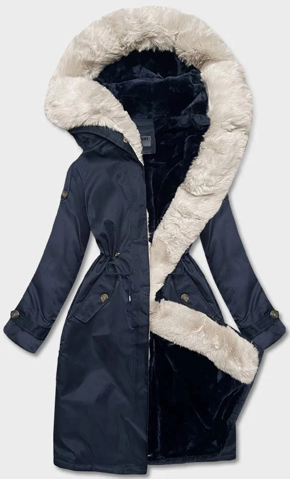 Přidání recenze k Tmavě modrá dámská zimní bunda s mechovitou kožešinovou podšívkou (B538-3046)