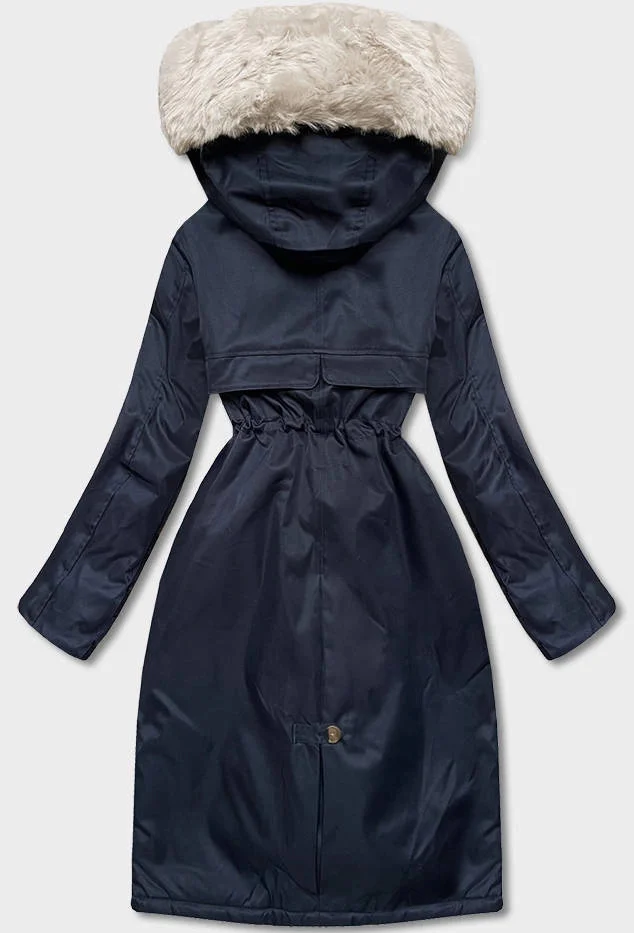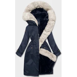 Tmavě modrá dámská zimní bunda s mechovitou kožešinovou podšívkou (B538-3046)