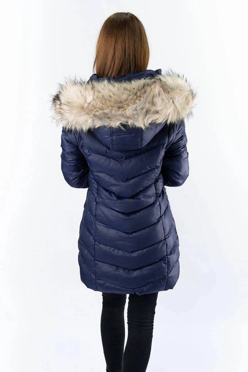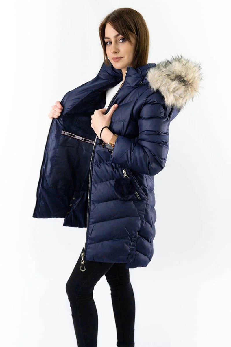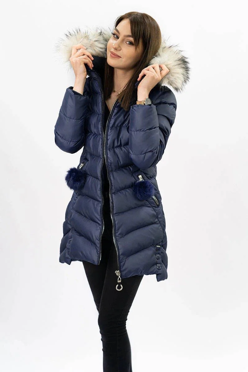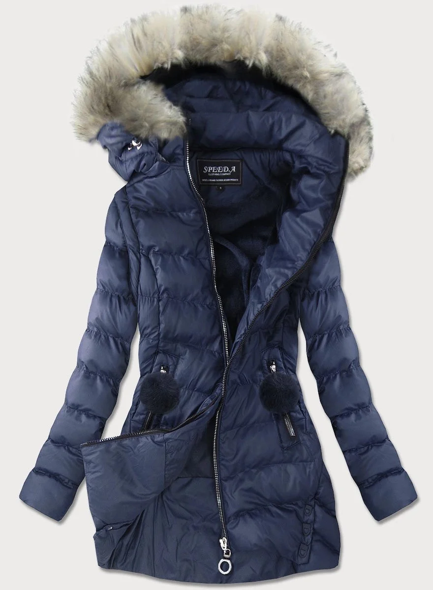 Přidání recenze k Tmavě modrá dámská zimní bunda s odepínacími rukávy (w761)