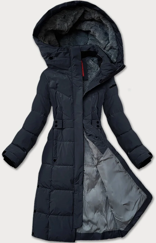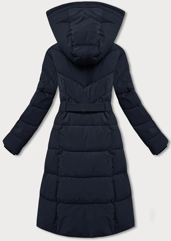 Tmavě modrá dámská zimní bunda s páskem LHD (LHD-24575)