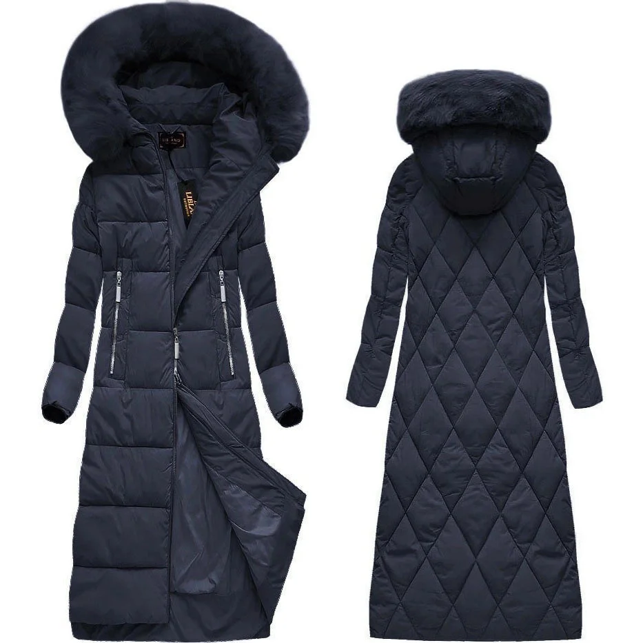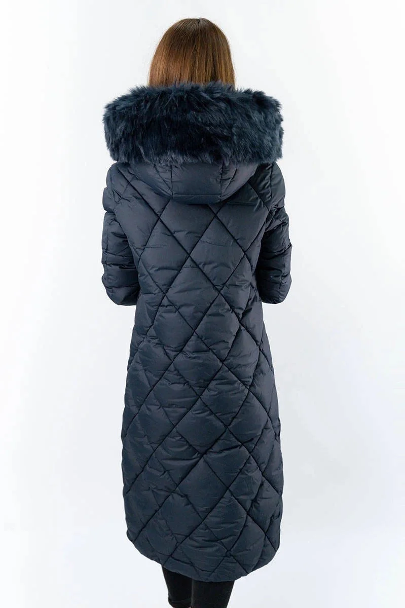 Přidání recenze k Tmavě modrá dlouhá dámská zimní bunda s kapucí model 21242133 - Libland