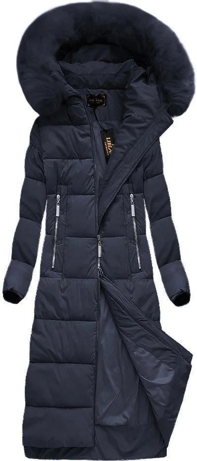 Tmavě modrá dlouhá dámská zimní bunda s kapucí model 21242133 - Libland