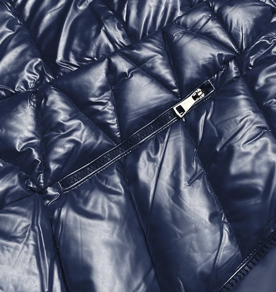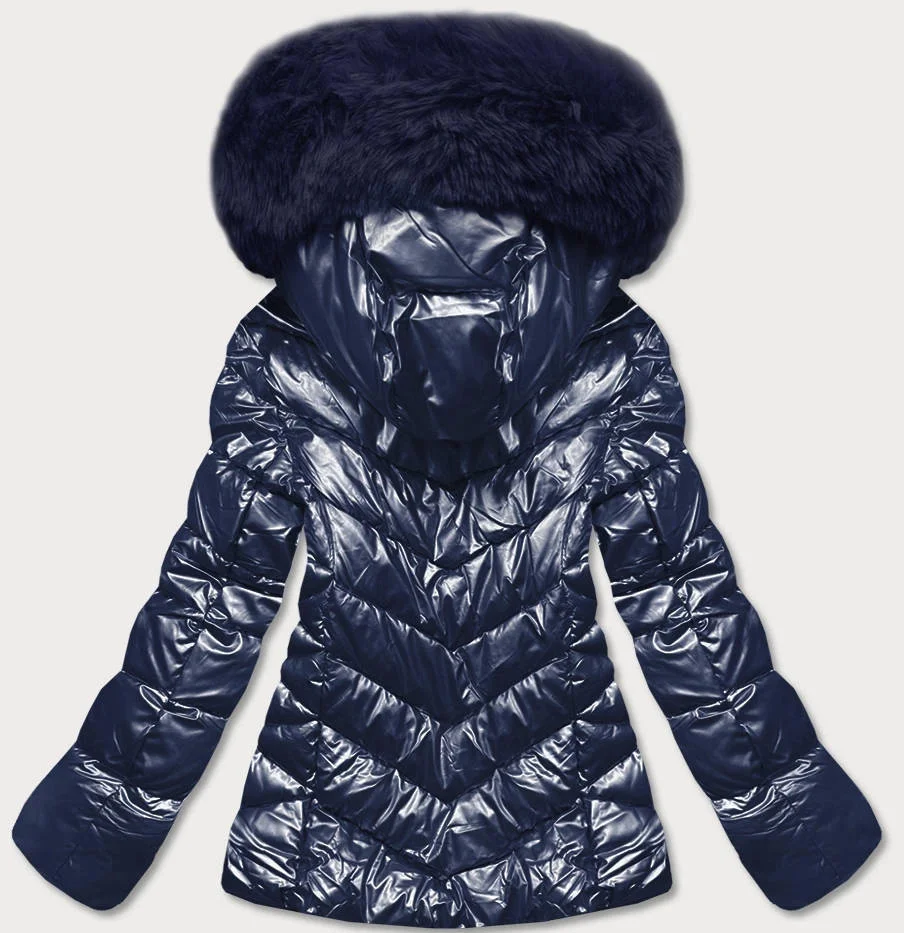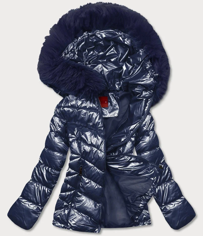 Tmavě modrá krátká dámská bunda s kožešinou (TY036-2)
