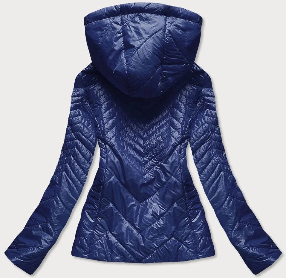 Tmavě modrá krátká dámská prošívaná bunda s kapucí (B9566)