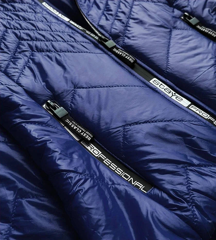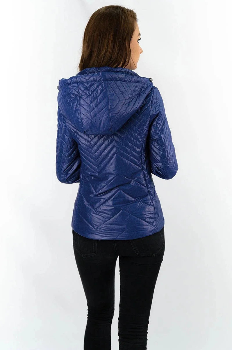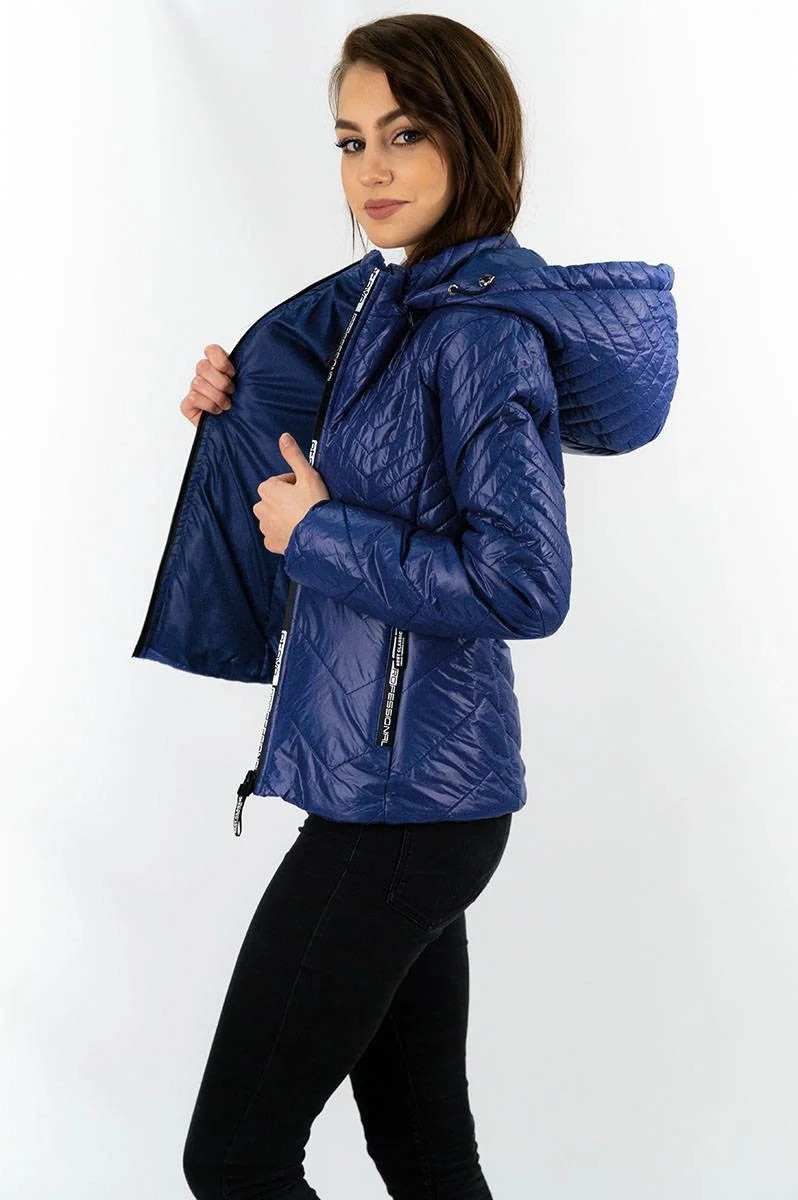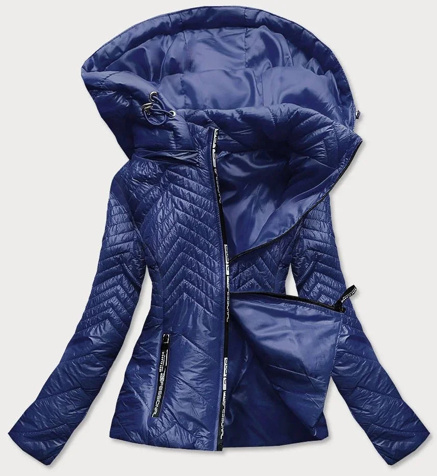 Přidání recenze k Tmavě modrá krátká dámská prošívaná bunda s kapucí (B9566)