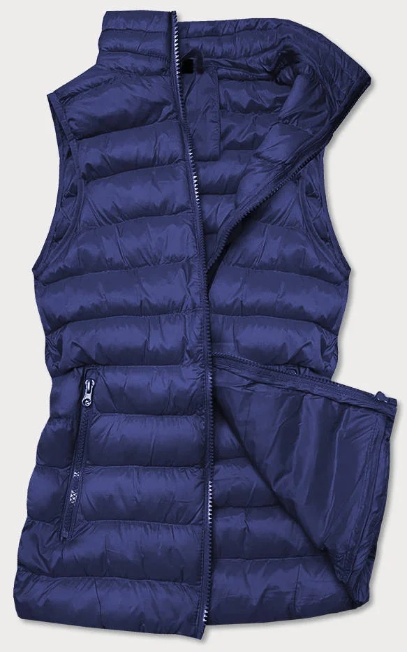 Tmavě modrá krátká dámská prošívaná vesta model 16279835 - J.STYLE