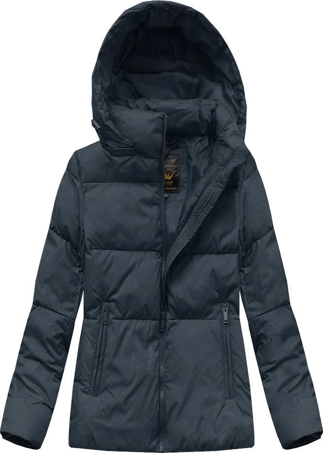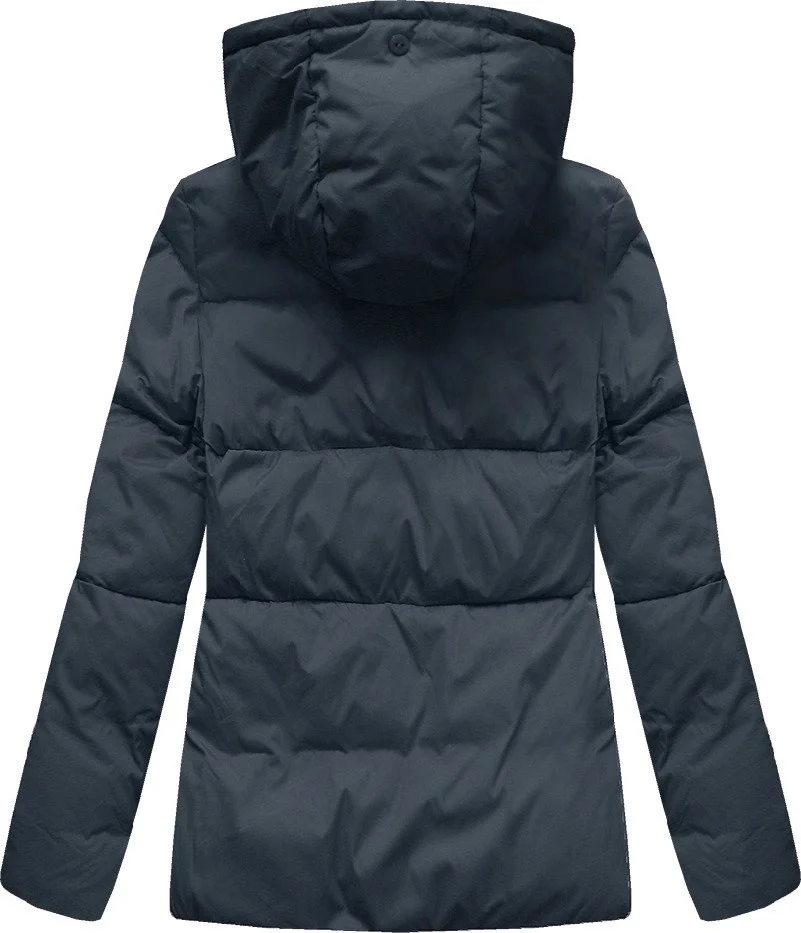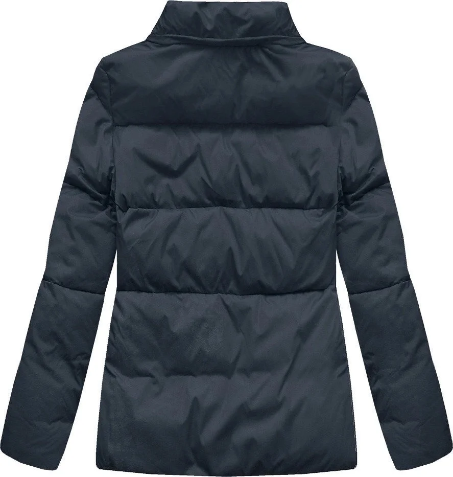 Tmavě modrá krátká dámská zimní prošívaná bunda (7694)