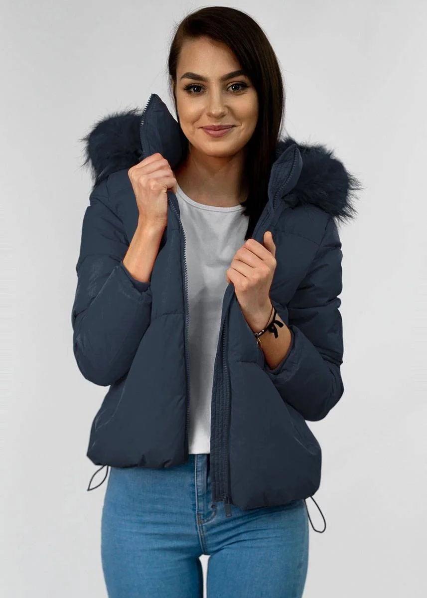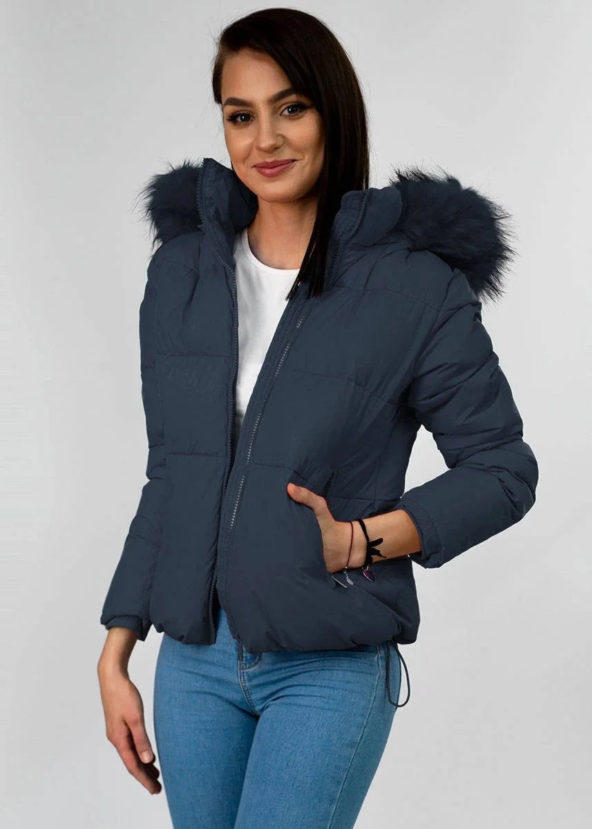 Přidání recenze k Tmavě modrá krátká dámská zimní prošívaná bunda (7694)