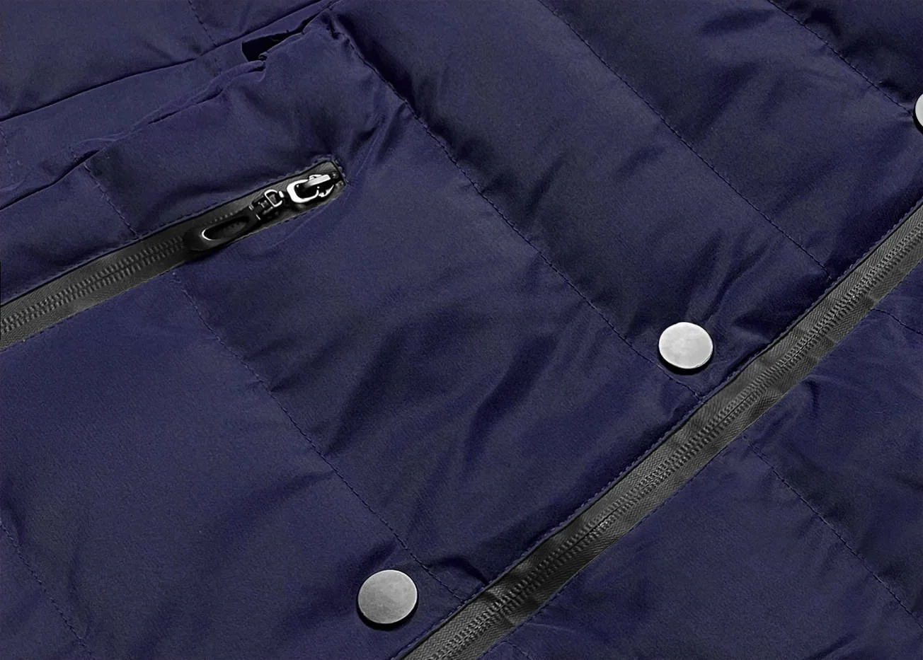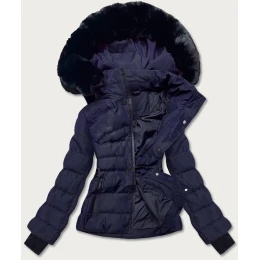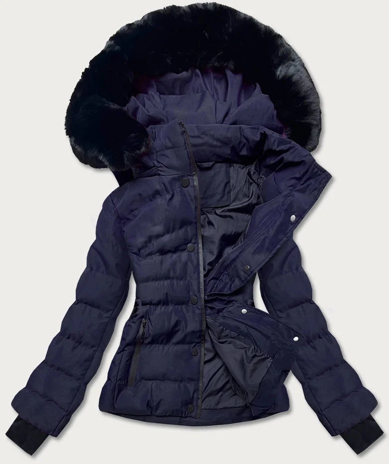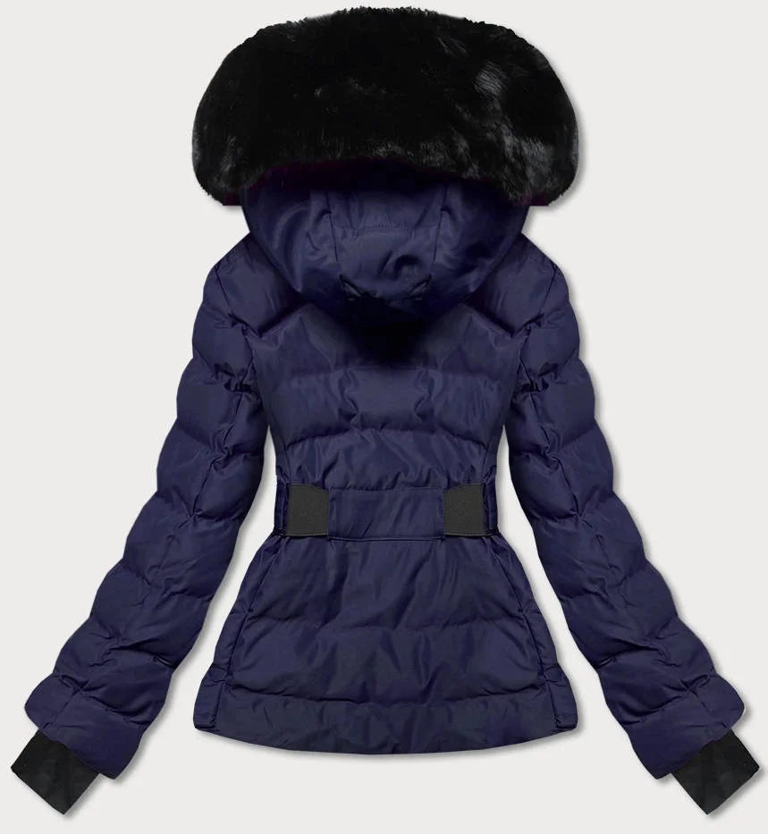 Přidání recenze k Tmavě modrá krátká vypasovaná dámská zimní bunda (5m770-215)