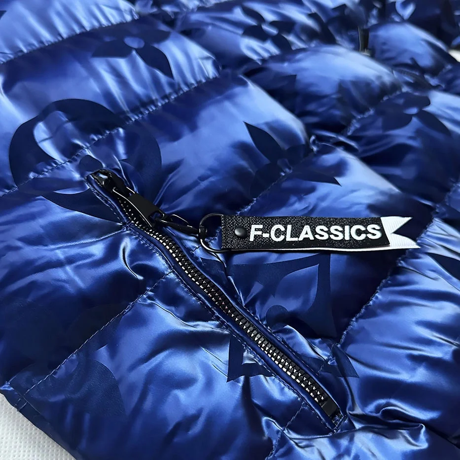 Bunda má volný střih, je zateplená vrstvou syntetické péřové výplně, má dvě kapsy a zapíná se stříbrným zipem. Model má kapuci olemovanou kožešinou. Kapuci i kožešinu lemující kapuci je možné odepnout. Rukávy jsou olemované stahovacími lemy. Bunda má délku do pasu.
