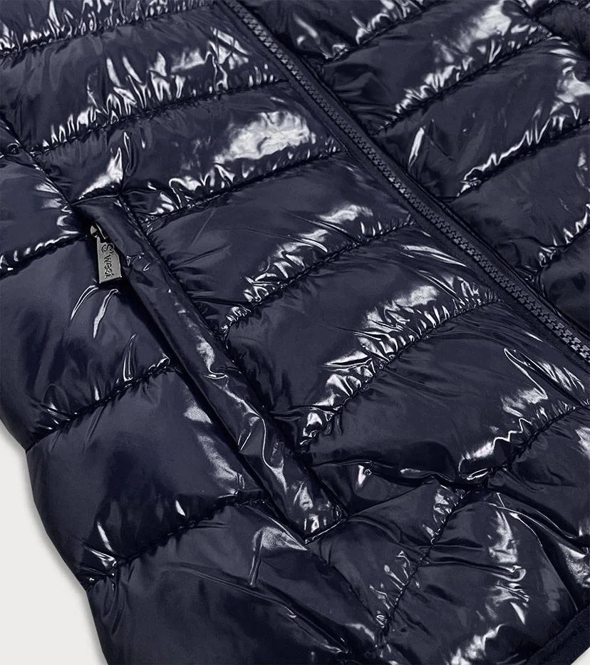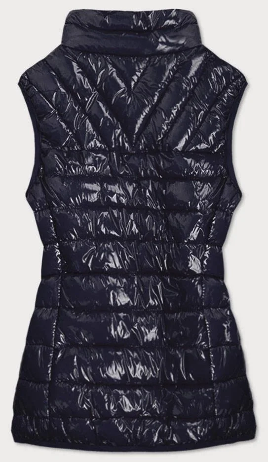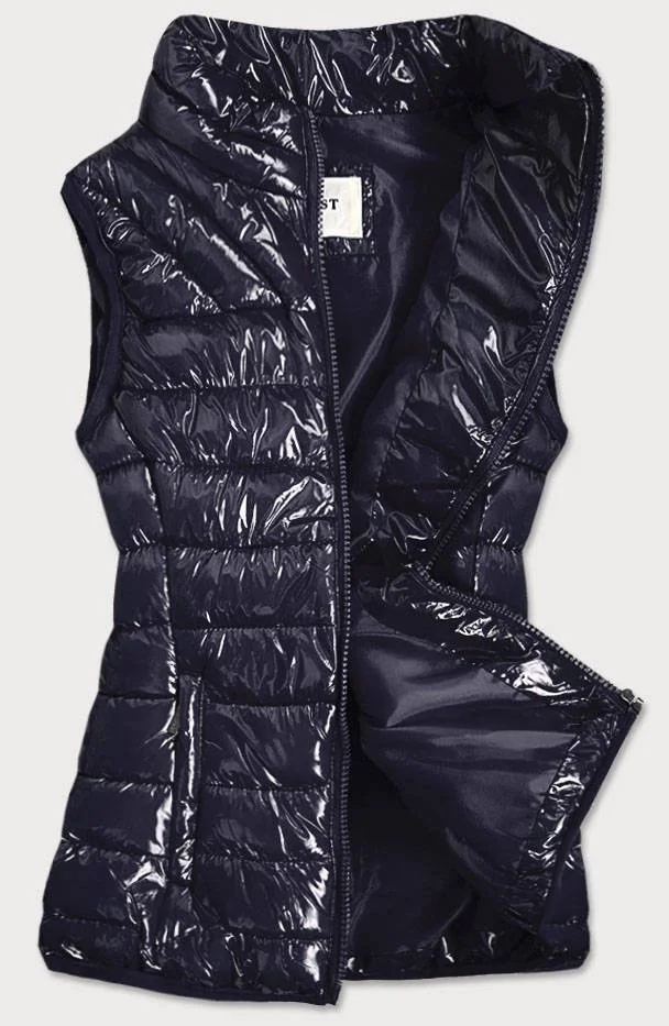 Tmavě modrá lesklá dámská vesta se stojáčkem (B0107)