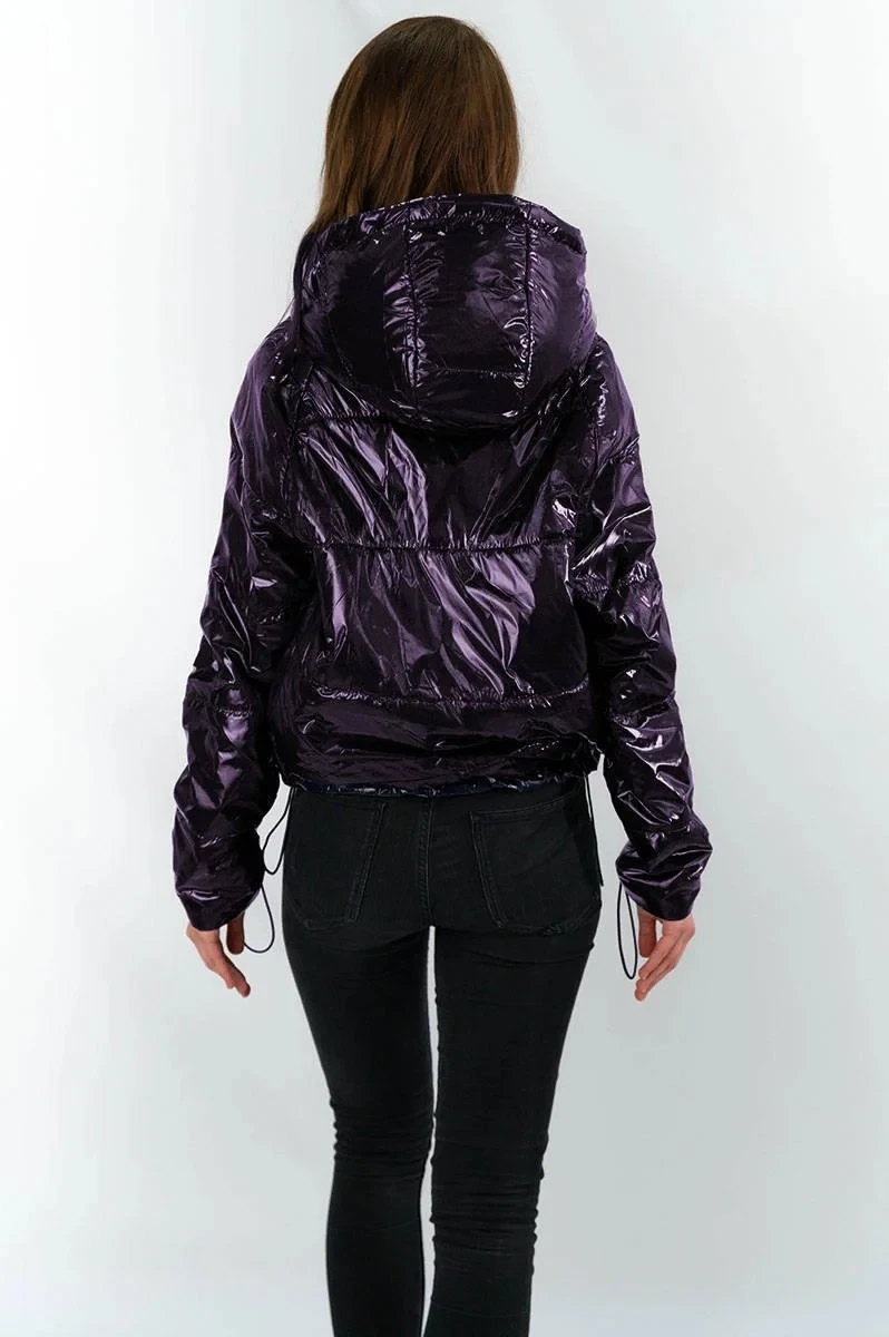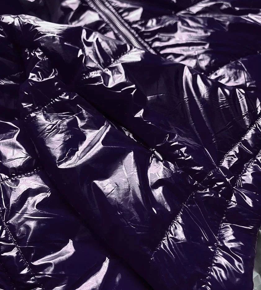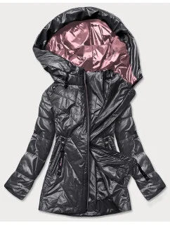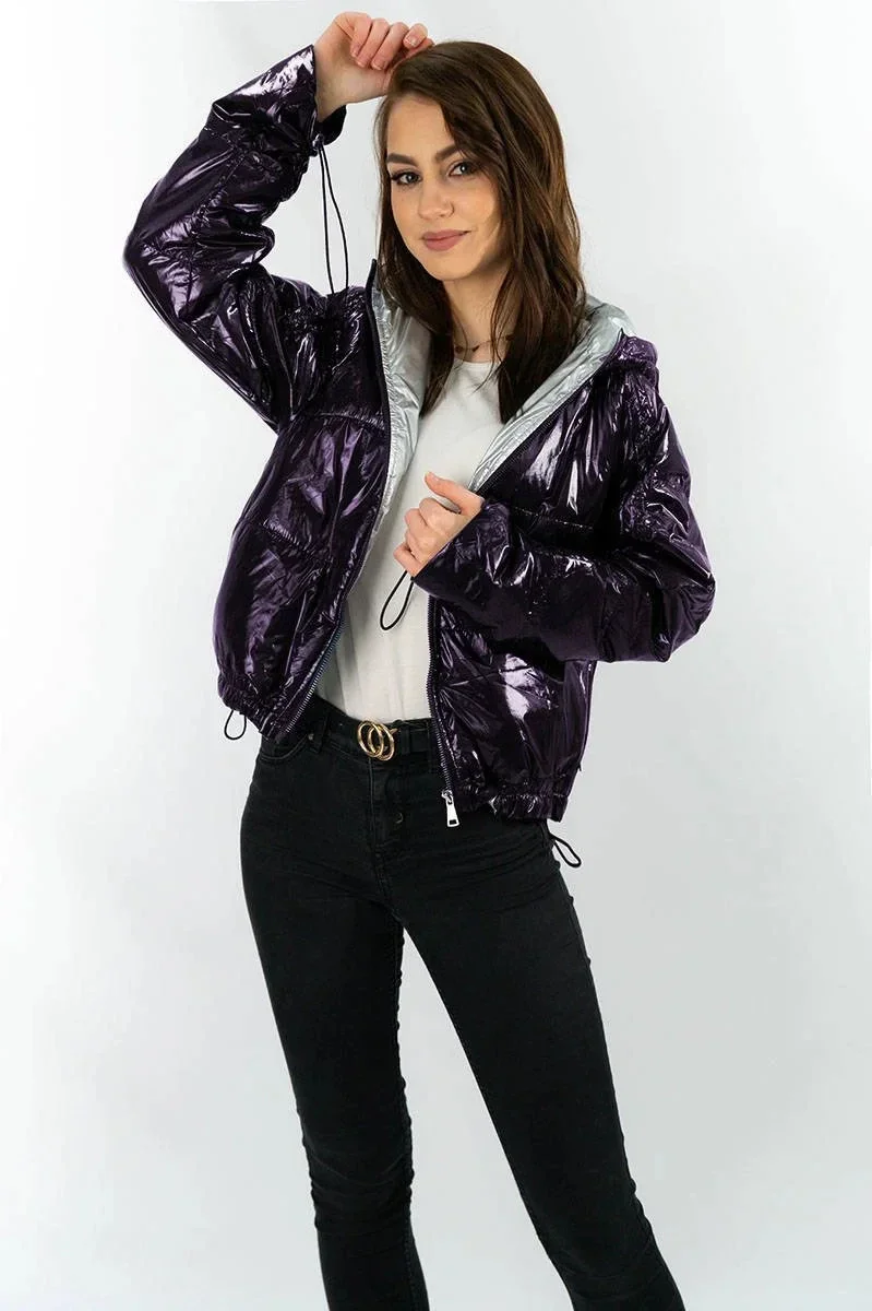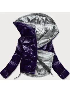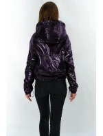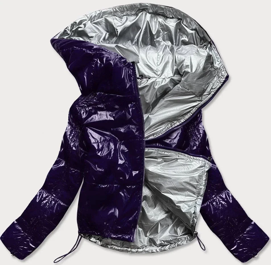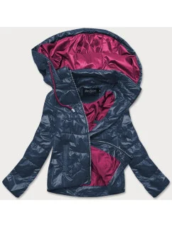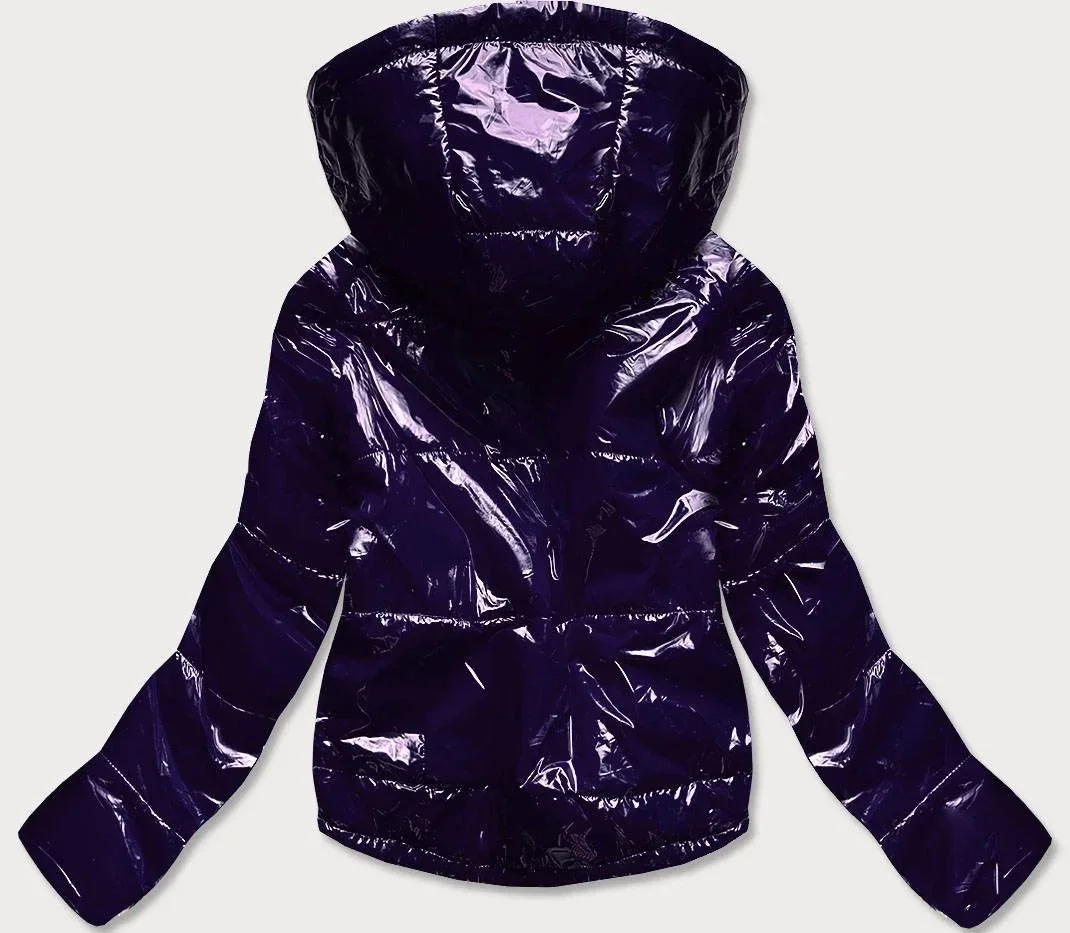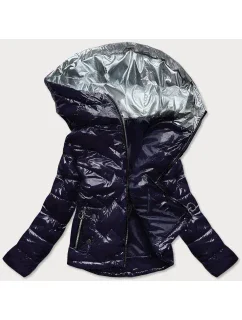 Přidání recenze k Tmavě modrá lesklá prošívaná dámská bunda s kapucí (B9560)