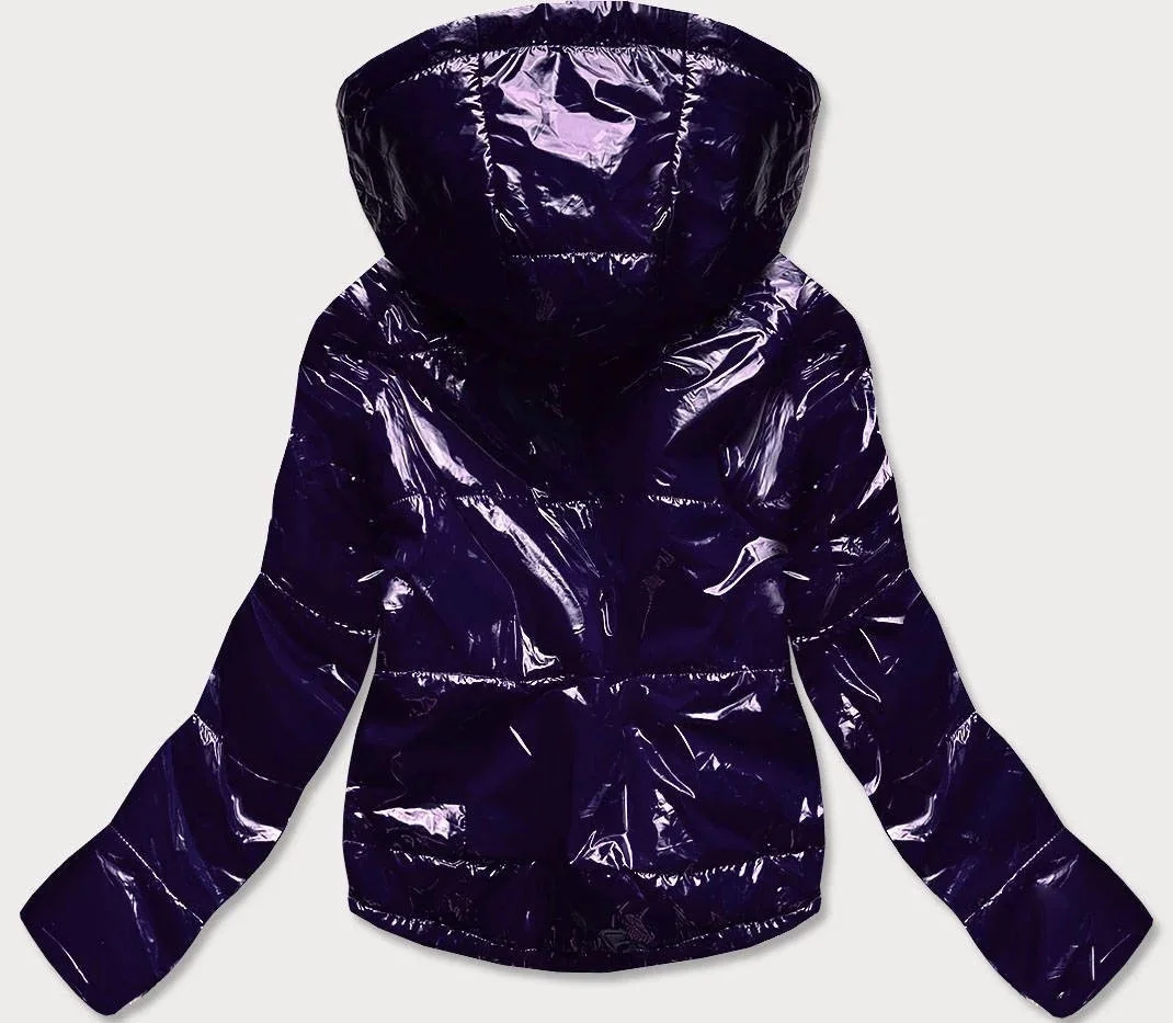 Tmavě modrá lesklá prošívaná dámská bunda s kapucí model 14764934 - S'WEST