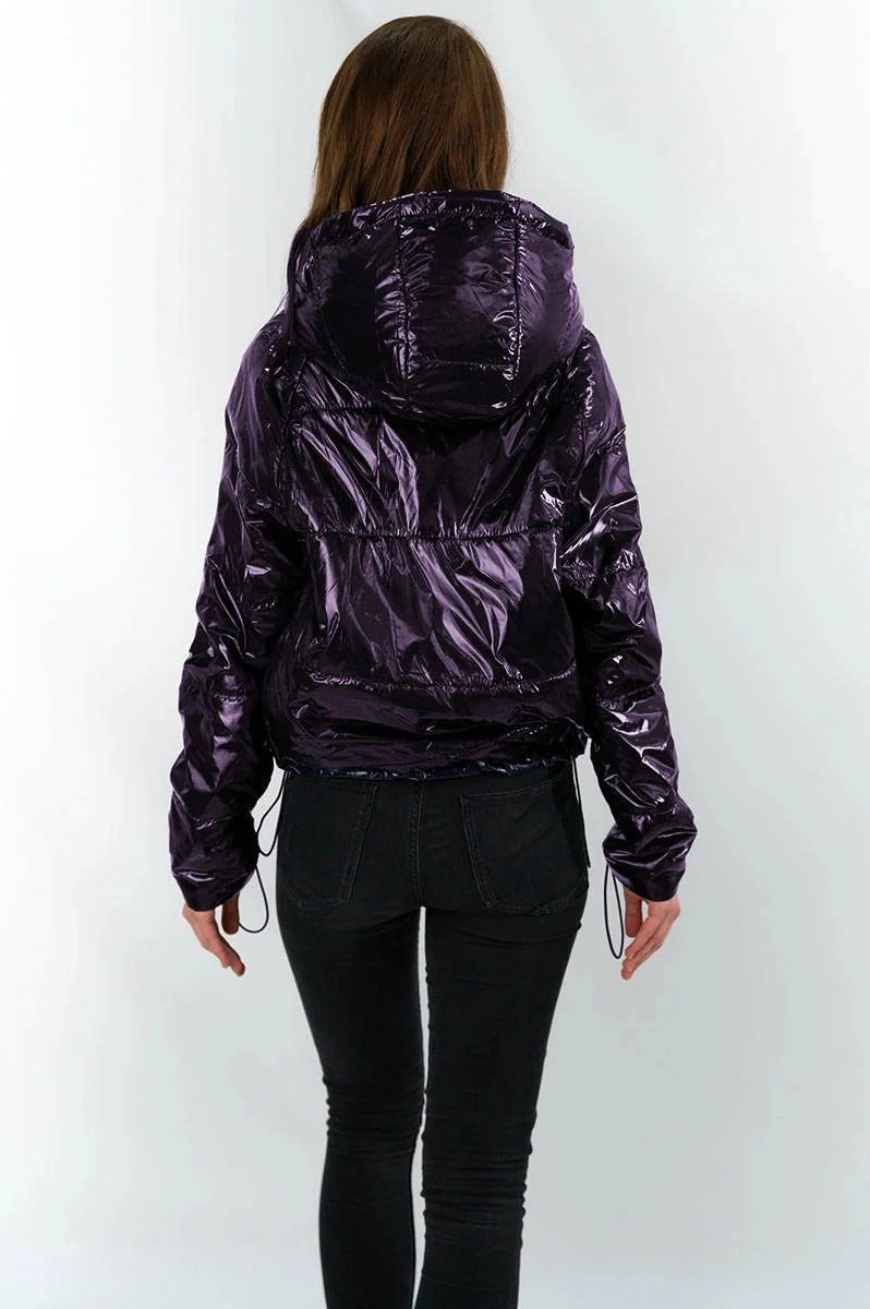 Přidání recenze k Tmavě modrá lesklá prošívaná dámská bunda s kapucí model 14764934 - S'WEST
