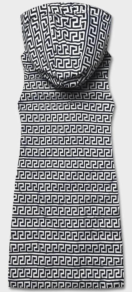 Vesta je lehce vypasovaná, má dvě kapsy a zapíná se zipem. Model má délku do poloviny stehen.